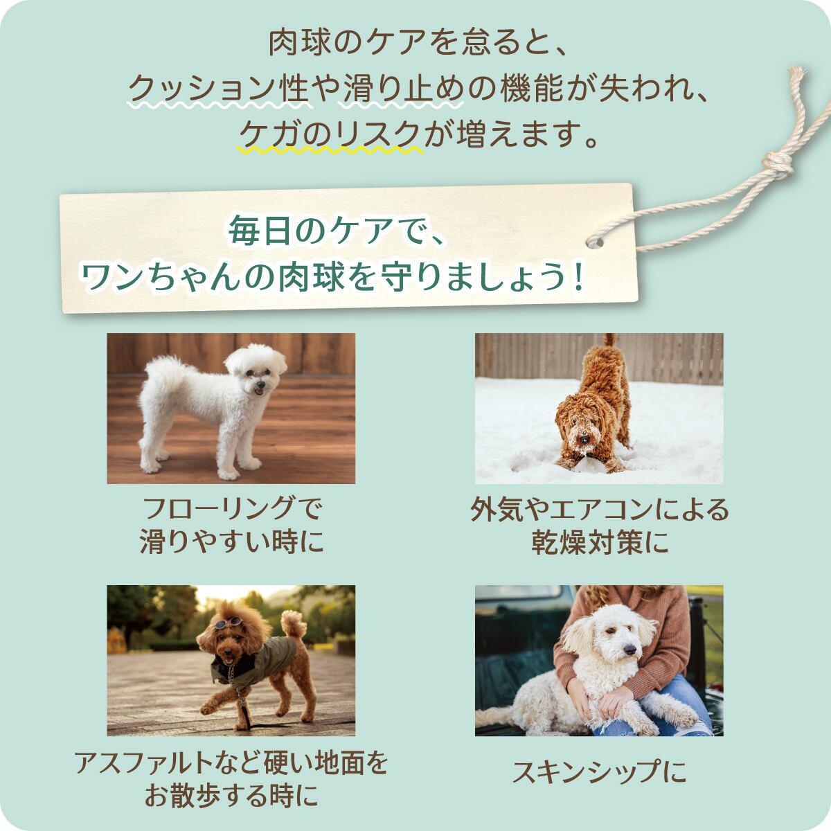 肉球のケアを怠ると、クッション性や滑り止めの機能が失われ、ケガのリスクが増えます。毎日のケアでワンちゃんの肉球を守りましょう!